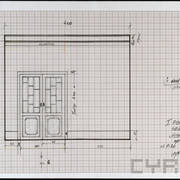 Projekt drzwi do pokoju gościnnego w domu Agafii w spektaklu "Ożenek" Nikołaja Gogola w reżyserii Łukasza Wiśniewskiego