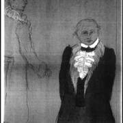 Projekt kostiumu Podkolesina w spektaklu "Ożenek" Nikołaja Gogola w reżyserii Łukasza Wiśniewskiego