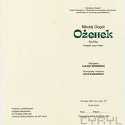 Program spektaklu "Ożenek" Nikołaja Gogola w reżyserii Łukasza Wiśniewskiego
