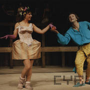 Maria Rybarczyk (Zerzabella) i Mirosław Kropielnicki (Leander, Kasander) w spektaklu "Parady"