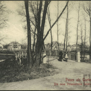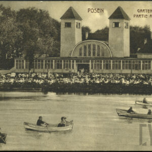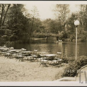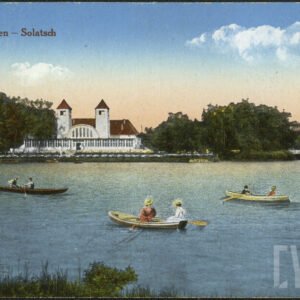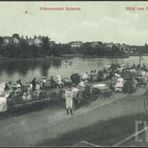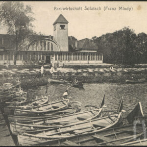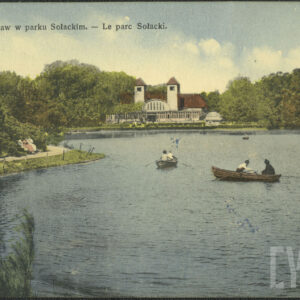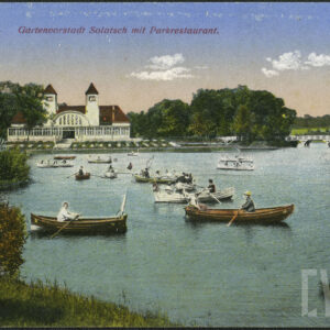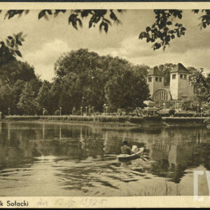 Park Sołacki to jeden z najstarszych parków w Poznaniu. Autorem tego pięknego założenia był Hermann Kube, ówczesny dyrektor Ogrodów Miejskich. Jego projekt zrealizowano w latach 1908-11. Park ma powierzchnię około 14 ha i wydłużony, elipsoidalny kształt. Leży w dolinie rzeczki Bogdanki, której spiętrzone wody utworzyły duży staw przewężony pośrodku i przecięty urokliwym mostkiem. Na stawie utworzono dwie zadrzewione wysepki, a na jego południowym brzegu otwarto w 1912 roku dużą restaurację z plenerowym ogrodem. Budynek restauracyjny powstał z zaadaptowanego do tego celu pawilonu przeniesionego z Wystawy Wschodnioniemieckiej, która rok wcześniej odbyła się na terenie dzisiejszych Targów, gdzie pełniła funkcję winiarni. Obiekt miał dwie charakterystyczne wieże wentylacyjne zlikwidowane w czasie niemieckiej przebudowy dokonanej w czasie II wojny światowej. Po odzyskaniu niepodległości park stał się jednym z ulubionych miejsc wypoczynku poznaniaków. Prócz spacerów wśród cennego drzewostanu ogród oferował liczne atrakcje – zabawy, dancingi, koncerty i festyny, a przede wszystkim przejażdżki łódkami, które cieszyły się niesłabnącym zainteresowaniem aż do lat 70. XX wieku. Zdjęcie na łódce dla setek, a może nawet tysięcy mieszkańców miasta było świetną pamiątką radosnego czasu spędzonego w pięknym otoczeniu przyrody. To właśnie pamiątkowe pocztówki w parkowych łódkach stanowią pokaźną część znakomitej sołackiej kolekcji Marcina Kentzer-Nowakowskiego. Równie liczne są pocztówki pokazujące restaurację Parkową (po wojnie Piracka, a potem Meridian), a na pozostałych widać otaczające staw alejki i sąsiadujące z parkiem uliczki z ich willową zabudową. Wszystkie doskonale oddają piękno tego wyjątkowego ogrodu będącego sercem Sołacza, starannie przemyślanego i zrealizowanego założenia urbanistycznego z początku XX wieku.
