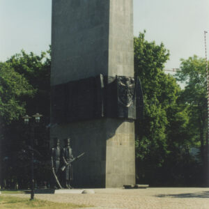 Akt erekcyjny pomnika wmurowano 28 grudnia 1963 roku w 45. rocznicę wybuchu powstania, monument odsłonięto 19 września 1965 roku. Ma 17 m wysokości i jest obłożony szarym granitem. Mniej więcej w połowie jego wysokości zamocowano płaskorzeźby ukazujące: strajk dzieci wrzesińskich, Marcina Kasprzaka z robotnikami, Michała Drzymałę i jego słynny wóz, rannego Franciszka Ratajczaka, pierwszą ofiarę powstania. Reliefy spaja płaskorzeźbiony orzeł Przemysła II. Integralnym elementem pomnika jest wolnostojąca, wykonana z brązu rzeźba dwóch powstańców.