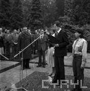 Prezentowane fotografie to kolejna część unikalnej kolekcji Stanisława Wiktora. Kulminacja zawodowej aktywności tego znanego zwłaszcza nieco starszym poznaniakom fotografa „Gazety Poznańskiej” przypadła na przełom lat 70. i 80. ubiegłego stulecia. Jej owocem jest zbiór kilku tysięcy fotografii stanowiących jedyny w swoim rodzaju dokument przybliżający ważny fragment powojennych dziejów naszego miasta. O wyjątkowości kolekcji Wiktora świadczy bowiem nie tylko jej objętość czy też wyraźnie sekwencyjny charakter, ale przede wszystkim szeroki zakres poruszanych przez autora tematów. Dzięki temu mamy dziś rzadką możliwość oglądania Poznania u szczytu prosperity w czasach gierkowskiej modernizacji na kredyt, Poznania gwałtownie się przebudowującego, nabierającego tak doskonale dziś znanego kształtu architektonicznego i urbanistycznego, wreszcie Poznania pogrążającego się w stagnacji przyniesionej przez permanentny kryzys lat 80. XX wieku, której najbardziej wymownym w przestrzeni miejskiej przykładem pozostawał górujący przez lata nad miastem potężny szkielet nieukończonego wieżowca Akademii Ekonomicznej. Wśród imponującej liczb zdjęć Stanisława Wiktora wyróżniają się te dokumentujące niezwykle ważny, zwłaszcza z perspektywy władz, aspekt PRL-owskiej codzienności, jaką był rozbudowany ceremoniał oficjalnych uroczystości. Nie tylko utrwalały one w społecznej świadomości wybranych bohaterów, czy też w zamierzony sposób gloryfikowały takie, a nie inne rocznice, ale propagowały również osiągnięcia oraz kolejne sukcesy „ludowej władzy”.