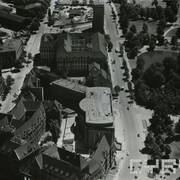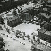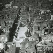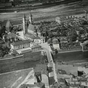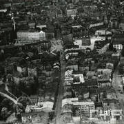Z wysoka widać lepiej, a na pewno ładniej. Znika szarość, bieda i smutek, a pojawia się przestrzeń, architektoniczny rozmach, zieleń i zaskakujące widoki. Tak było z Poznaniem w okresie wczesnego PRL – wystarczyło wznieść się wysoko, aby dostrzec zjawiskowe miasto. To czego nie widać z perspektywy przechodnia, jest doskonale widoczne z lotu ptaka. Imponujące kwartały zabudowy Starego Miasta, majestatyczne budowle Dzielnicy Cesarskiej, socrealistyczne i modernistyczne osiedla, starannie rozplanowane parki i place, reprezentacyjna przestrzeń poznańskich targów i mnóstwo zieleni sprawiają, że Poznań z lotu ptaka jawi się jako piękne, solidne, zadbane europejskie miasto. A przecież wtedy, pod koniec lat 50. i na początku 60. XX wieku, kiedy powstały te zdjęcia, wcale takim nie był. Cieniem na jego konterfekcie kładły się wciąż jeszcze zniszczenia wojenne i uciskał gorset komunizmu.