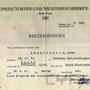 Drugi z kolei syn dziadków Józef to mój ojciec. Krótko uczył się zawodu w rodzinnym Pleszewie, a potem opuścił gospodarstwo i pojechał do Poznania. Podjął pracę jako kierowca w firmie „K. Przybyła” przy ul. Święty Marcin 24. Z tego okresu pochodzą zdjęcia jubileuszowe, na których widać także szefostwo firmy, jak na solidną firmę wędliniarską przystało – o budzących respekt posturach. Każdy pracownik otrzymał taką fotografię w formacie A4 z osobistą dedykacją właściciela. Kontakty szefostwa z pracownikami cechowała uprzejmość i kultura, czego dowodem jest kserokopia świadectwa pracy. Ojciec opuścił firmę „K. Przybyła” tylko dlatego, że udało mu się znaleźć pracę w Izbie Skarbowej, pewną i dobrze płatną. Po wybuchu II wojny światowej ojciec został powołany do wojska. Był żołnierzem Września, jeńcem wojennym, a po powrocie do Poznania został skierowany do pracy w DWM (Deutsche Waffen und Munitionsfabriken, tak nazywały się wówczas Zakłady im. H. Cegielskiego). Z tego czasu pochodzi przepustka wydrukowana na płótnie. Ocalało też jedno zdjęcie mojego ojca ze stalagu (trochę to dziwnie wygląda, ale jeńcy, którym rodzina dostarczyła cywilną odzież, mogli jej używać). Na fotografii z Operą w tle zrobionej przez ulicznego fotografa w latach 60. widać ojca i moich dwóch braci: Stanisława i nieżyjącego już Jana Krzysztofa. Plac Mickiewicza jest pusty, bez pomników i prawie bez zieleni, jedynie z jakąś planszą (mapa województwa, a może plan miasta?).