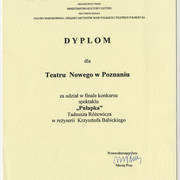 Dyplom dla Teatru Nowego w Poznaniu za udział spektaklu "Pułapka" w konkursie na wystawienie polskiej sztuki współczesnej