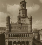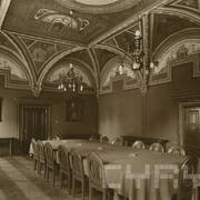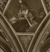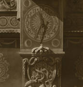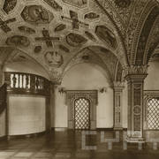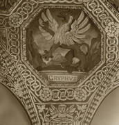 Teki Ulatowskiego przechowywane są w Biurze Miejskiego Konserwatora Zabytków w Poznaniu. Dzięki uprzejmości i otwartości kompetentnych pracowników biura i rozumieniu przez nich niekwestionowanych walorów tej kolekcji dla wszystkich poznaniaków, prezentujemy w CYRYLU kolejną tekę, w której znajduje się 49 zdjęć najbardziej reprezentacyjnego gmachu w Poznaniu, jego dumy isymbolu – ratusza, gotyckiej budowli okazale przebudowanej w połowie XVI wieku przez włoskiego architekta Jana Baptistę di Quadro z Lugano, później wielokrotnie zmieniającej kostium historyczny, zrujnowanej w lutym 1945 roku i odbudowanej w formach renesansowych w latach 50. XX wieku. Największym i najbardziej reprezentacyjnym wnętrzem ratusza jest Sień Wielka. Zawdzięcza to fantastycznej, bogatej, renesansowej dekoracji dwudzielnego sklepienia wspartego na dwóch kamiennych kolumnach. Stiukowa, kolorowa dekoracja przepełniona jest wielką liczbą najróżniejszych symboli, które wskazywały ówczesnemu człowiekowi, a przede wszystkim obywatelowi ład państwa i kosmosu. Dzisiaj sklepienie jest świetnym wykładem dawnego postrzegania świata, a rozwikłanie znaczenia planet, znaków zodiaku, zwierząt i herbów może być znakomitą nauką i zabawą. Na zdjęciach Romana Stefana Ulatowskiego znalazło się wiele z tych symbolicznych przedstawień. Można się zabawić w ich odczytanie razem z Cyrylem.