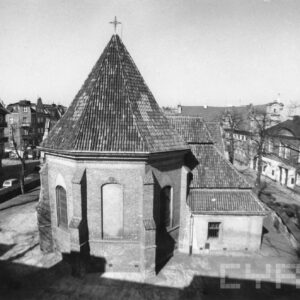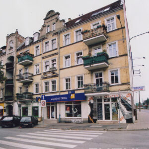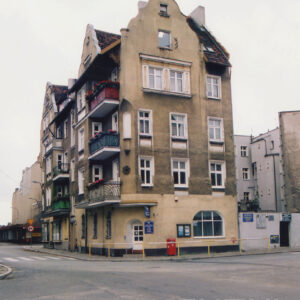 Dom w północnej pierzei dawnego Rynku Śródeckiego, jeden z nielicznych ocalałych w czasie budowy trasy szybkiego ruchu (dzisiaj ul. kard. Stefana Wyszyńskiego)1968
