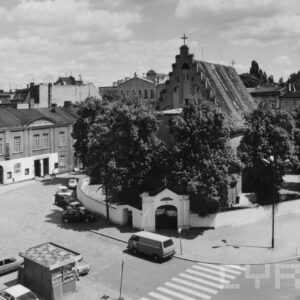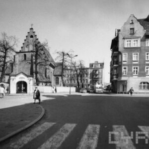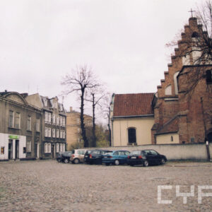 Ulica Filipińska, z lewej fragment kościoła św. Małgorzaty, w tle dawny dom Kongregacji Filipinów (obecnie Katedralna Ogólnokształcąca Szkoła Muzyczna)1997