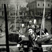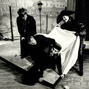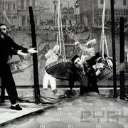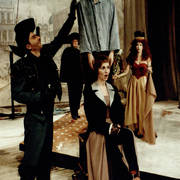 Antonina Choroszy (Beatrice z Turynu), Mirosław Kropielnicki (Truffaldino, sługa dwóch panów), Paweł Binkowski (Florindo Aretusi z Turynu) w spektaklu "Sługa dwóch panów" Carlo Goldoniego w reżyserii Romana Kordzińskiego31.12.1993