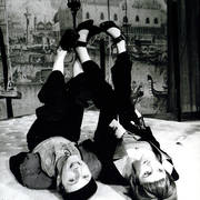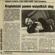 Mirosław Kropielnicki (Truffaldino, sługa dwóch panów) i Daniela Popławska (Smeraldina, pokojówka Klarysy) w spektaklu "Sługa dwóch panów" Carlo Goldoniego w reżyserii Romana Kordzińskiego31.12.1993