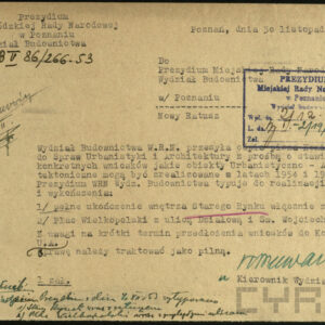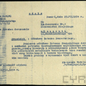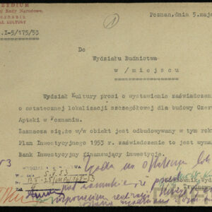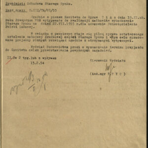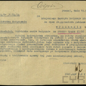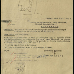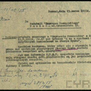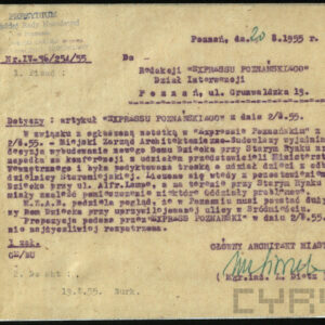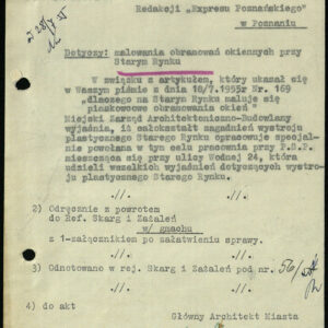 25.03.1955Pismo głównego architekta miasta Leona Dietza do redakcji “Ekspressu Poznańskiego” z odpowiedzią na artykuł Dlaczego na Starym Rynku maluje się piaskowcowe obramowania okien?