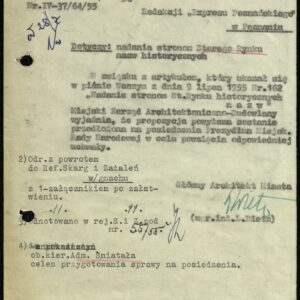 27.07.1955Pismo głównego architekta miasta Leona Dietza do redakcji “Ekspressu Poznańskiego” z odpowiedzią na artykuł Nadanie stronom Starego Rynku historycznych nazw