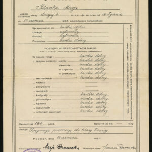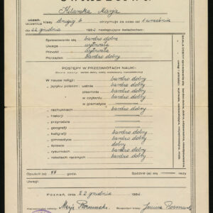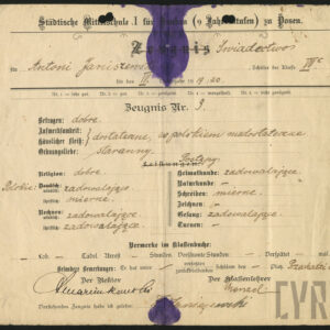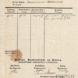 Świadectwa szkolne, dawne podręczniki, programy nauczania, sprawozdania z działalności szkoły, legitymacje i dzienniczki uczniowskie, okolicznościowe jednodniówki i dyplomy nauczycielskie po wielu dziesiątkach lub nawet setkach lat, o ile przetrwają, stają się wyjątkowymi dokumentami historii szkolnictwa i istnienia szkół, o których nikt już dzisiaj nie pamięta. Można na ich podstawie prześledzić zmiany, jakie dokonywały się w poznańskich szkołach od 2. połowy XIX wieku do wybuchu II wojny światowej najpierw w czasie zaborów w szkole pruskiej, a potem w dwudziestoleciu międzywojennym w placówkach polskich: czego uczono, które przedmioty były najważniejsze, jak oceniano i w jakiej skali, jakim systemem prowadzono edukację. Nawet pobieżna analiza świadectw, z których najstarsze wystawiono 120 lat temu, pokazuje, że niezależnie od organizacji nauczania i typu szkoły od początku XX wieku w ocenie ucznia najważniejsze było zachowanie determinowane osobno ujmowanymi czynnikami, takimi jak: pilność, uwaga i punktualność, a w szkole niemieckiej dodatkowo porządek. Prócz ocen bardzo dobrych, dobrych, dostatecznych, czasami miernych i niedostatecznych na świadectwach znajdują się określenia bardziej niekonwencjonalne, niekiedy nawet zabawne: zadowalające, niejednostajne albo wytrwałe. Niektóre szkoły, głównie żeńskie, prócz zwyczajowych przedmiotów, takich jak języki, historia, przyroda czy geografia, prowadziły obowiązkowe zajęcia z robótek ręcznych i gospodarstwa domowego. W zaborze pruskim nie silono się specjalnie na wszechstronne kształcenie polskich uczniów, uczono ich języka niemieckiego w mowie i piśmie oraz rachunków, próbując wychować na dobrych obywateli państwa pruskiego. W 1871 roku wydano nawet specjalną książkę, rodzaj ciekawego słownika do nauki języka niemieckiego, w którym słowa polskie i niemieckie przeplatają się w rytm toczącego się zdania.