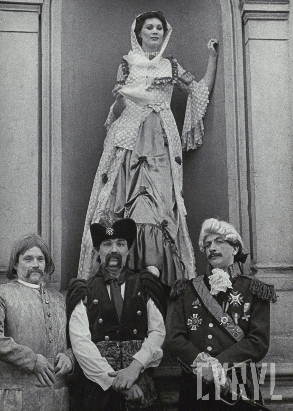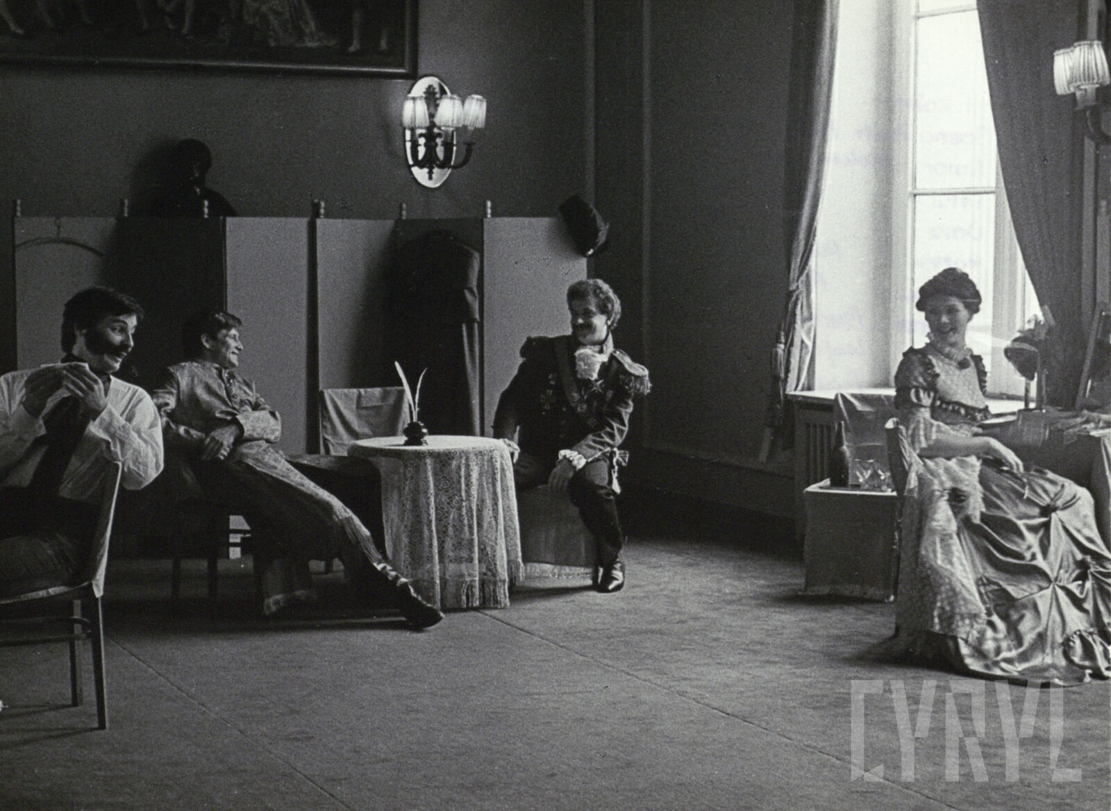 09.05.1983Mariusz Puchalski, Wojciech Siedlecki, Michał Frydrych i Renata Husarek w spektaklu Trzy po trzy Aleksandra Fredro w Teatrze Polskim w Poznaniu