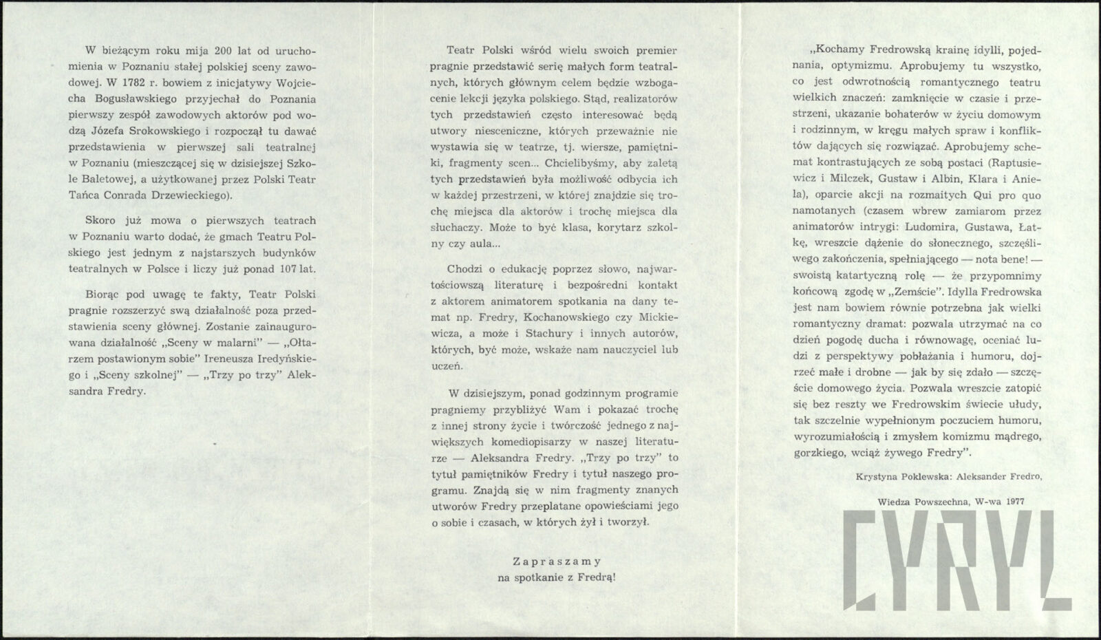 Kolekcja nadrzędna: Teatr Polski, spektakle | 1975-2008 | Ze zb. Teatru Polskiego w Poznaniu