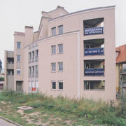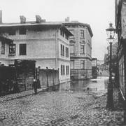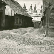 Budynki mieszkalne przy ul. Cybińskiej 1-5 rozebrane w czasie II wojny światowej, w oddali katedra