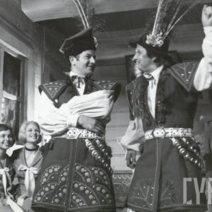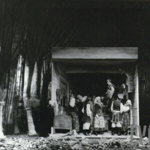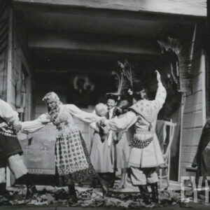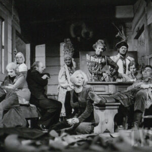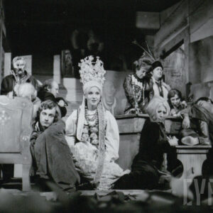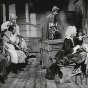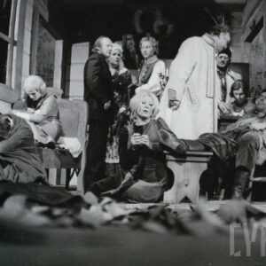 Jacek Flur, Józef Jachowicz, Gabriela Sarnecka, Jerzy Schejbal, Cecylia Putro i Rajmund Jakubowicz w spektaklu "Wesele" Stanisława Wyspiańskiego w Teatrze Polskim w Poznaniu27.09.1975