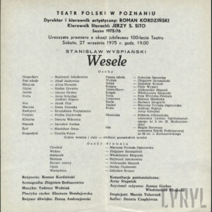 Janusz Greber, Piotr Wypart, Elżbieta Ofierzyńska i Ewa Wrońska-Penkala w spektaklu "Wesele" Stanisława Wyspiańskiego w Teatrze Polskim w Poznaniu27.09.1975