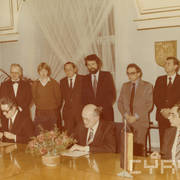 29 października 1979 roku Hanower i Poznań zostały miastami partnerskimi. Duża w tym zasługa ówczesnego nadburmistrza Hanoweru Herberta Schmalstiega, który bardzo się starał, aby ta współpraca doszła do skutku, a potem w trudnych latach 80. potrafił prowadzić ją efektywnie, łagodząc pojawiające się kwestie sporne. Współpraca partnerska obu miast obejmuje kilka dziedzin: sport, kulturę, ochronę środowiska i komunikację. W 1986 roku Schmalstieg w towarzystwie kilku osób przyjechał do Poznania z oficjalną wizytą. Zwiedził miasto i PGR Naramowice, ale najważniejszym punktem tej wizyty było podpisanie porozumienia o kontynuacji nawiązanej w 1979 roku współpracy. Uroczystość odbyła się 14 stycznia w Sali Błękitnej Urzędu Miasta Poznania, dokument podpisali nadburmistrz Schmalstieg i prezydent Poznania Andrzej Wituski. W Archiwum Kroniki Miasta Poznania zachował się niewielki album ze zdjęciami z tej wizyty. W 1999 roku Herbert Schmalstieg został uhonorowany tytułem Zasłużony dla Miasta Poznania.