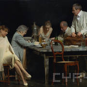 Scena zbiorowa ze spektaklu "Wujaszek Wania" Antona Czechowa w reżyserii Waldemara Śmigasiewicza