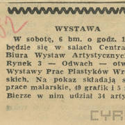 Wystawa prac plastyków wrocławskich | 1960 | Galeria Miejska Arsenał