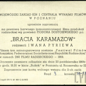 Do Cyryla trafiły zaproszenia. Zwykłe, papierowe, bardziej lub mniej ozdobne druki. Skrzętnie gromadzone przez adresatów niespodziewanie ułożyły się w historię ważnych uroczystości odbywających się w Poznaniu w ciągu dwóch dekad pełni rozkwitu PRL. Istotne z tamtej perspektywy wydarzenia społeczne, polityczne i kulturalne obchodzono na uroczystych akademiach, koncertach i sesjach. Oficjalny Poznań żył w tym czasie rozpięty między kilkoma rocznicami, które kształtowały ceremonialny kalendarz mieszkańców miasta, a już na pewno towarzyszy, członków Polskiej Zjednoczonej Partii Robotniczej, która w tych latach odnotowała największą liczbę członków w swych dziejach. Rok rozpoczynały styczniowe uroczystości związane z upamiętnieniem rocznicy powstania Polskiej Partii Robotniczej (PPR), partii matki rządzącej wówczas Polskiej Zjednoczonej Partii Robotniczej. Drugie pospolite ruszenie miało miejsce w okolicach 22 lutego, organizowano wówczas liczne wydarzenia związane z rocznicami wyzwolenia Poznania i powstania Armii Czerwonej. Kwiecień upływał pod znakiem urodzin Włodzimierza Lenina fetowanych na uroczystych akademiach organizowanych przez Komitet Wojewódzki PZPR. W maju zapraszano na koncerty związane ze Świętem Pracy, a Wojewódzki Komitet Frontu Jedności Narodu (organizacji politycznej realizującej cele PZPR) inicjował uroczystości upamiętniające rocznice zwycięstwa nad faszyzmem. Szczególnie ważnym miesiącem w oficjalnym kalendarzu ówczesnych władz był lipiec – z wielką pompą obchodzono wtedy kolejne rocznice powstania Polskiej Rzeczpospolitej Ludowej (PRL). We wrześniu goście zasiadali na honorowej trybunie Stadionu im. 22 Lipca, aby wziąć udział w tradycyjnych dożynkach. W październiku uroczyście fetowano zwycięską Wielką Socjalistyczną Rewolucję Październikową. Koncerty i akademie nie kończyły uroczystych obchodów rewolucji – w 1967 roku w kinie Bałtyk zainaugurowano pokaz filmów z okazji 50-lecia kinematografii radzieckiej (przegląd rozpoczynał film Sergiusza Bondarczuka Wojna i pokój), a w 1969 roku – Festiwal Filmów Rosyjskiej Federacji Socjalistycznej Republiki Radzieckiej (w czasie otwarcia pokazano Braci Karamazow Iwana Pyrjewa). W ten sposób Poznań razem z całym ludowym państwem oddzielonym żelazną kurtyną od reszty świata długie lata w cyklu rocznym lewitował na wąskiej orbicie realnego socjalizmu i jego świąt. A potem przychodził grudzień, Święta Bożego Narodzenia i trzeba było poczekać do stycznia…