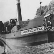 Jerzy rozpoczął swoją przygodę z żeglugą w 1956 roku na Kazimierzu Wielkim. Spory, bo 38-metrowy holownik był tylnokołowym parowcem. Holował barki z kamieniami i faszyną do budowy ostróg na Warcie, a w niedziele zamieniał się w statek wycieczkowy i woził pasażerów z Poznania do Puszczykowa i Rogalina. Po kamienie i faszynę holownik pływał do Krzykos i Orzechowa; tam Jerzy Kujawa poznał swoją przyszłą żonę Genowefę. Zdarzało się, że statek transportował spływ flisacki z Drawy na Noteć, a od Santoka przejmował tratwy i transportował do tartaku Sieraków. W takich przypadkach załoga spędzała na holowniku nawet kilka tygodni. Portem macierzystym Kazimierza Wielkiego był port rzeczny na Czartorii, ale zimę holownik spędzał w porcie na Starołęce. Załoga Kazimierza Wielkiego składała się z pięciu osób: kapitana, sternika, palacza, mechanika i marynarza. Jerzy Kujawa był sternikiem, a zawodu uczył go ówczesny kapitan parowca Edmund Laszczewski.
