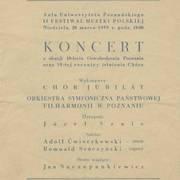 Program II Festiwalu Muzyki Polskiej w Auli Uniwersytetu Poznańskiego, w repertuarze m.in. "Hasło", "W polu ogródeczek", "Na ściernisku" i "Ojczyzna" Feliksa Nowowiejskiego20.03.1955