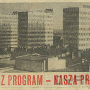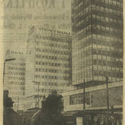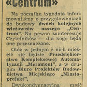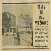 Notatka poświęcona oddaniu inwestorom pierwszych trzech wieżowców Domów Towarowych Centrum (Alfa) przy ul. Czerwonej Armii (dzisiaj ul. Święty Marcin)04.03.1969
