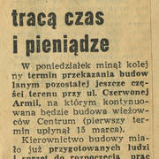 Artykuł o kolejnych opóźnieniach na budowie pierwszego etapu Domów Towarowych Centrum (Alfa) przy ul. Czerwonej Armii (dzisiaj ul. Święty Marcin)27.06.1969