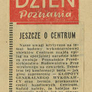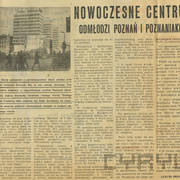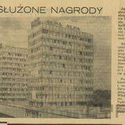 Artykuł informujący o przyznaniu Nagrody Poznania i województwa poznańskiego zespołowi pracowników "Miastoprojektu" za budowę Domów Towarowych Centrum (Alfa) przy ul. Czerwonej Armii (dzisiaj ul. Święty Marcin)28.02.1969