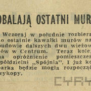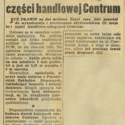 Notka na temat rozbiórki kamienic poprzedzającej drugi etap budowy Domów Towarowych Centrum (Alfa) przy ul. Czerwonej Armii (dzisiaj ul. Święty Marcin)13.06.1969