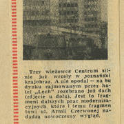 Notatka zapowiadająca ukończenie prac na budowie pierwszego etapu Domów Towarowych Centrum (Alfa) przy ul. Czerwonej Armii (dzisiaj ul. Święty Marcin)19.08.1969