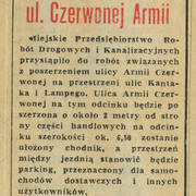 Notatka informująca o zakończeniu robót drogowych w obrębie Domów Towarowych Centrum (Alfa) przy ul. Czerwonej Armii (dzisiaj ul. Święty Marcin)21.09.1969–22.09.1969