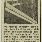 Artykuł poświęcony budowie drugiego etapu Domów Towarowych Centrum (Alfa) przy ul. Czerwonej Armii (dzisiaj ul. Święty Marcin)