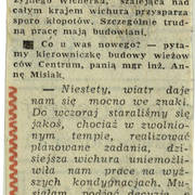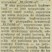 Notatka poświęcona utrudnieniom w ruchu pieszych w związku z budową drugiego etapu Domów Towarowych Centrum (Alfa) przy ul. Czerwonej Armii (dzisiaj ul. Święty Marcin)