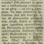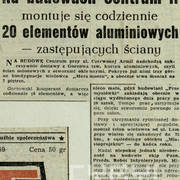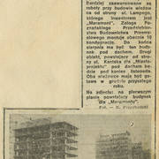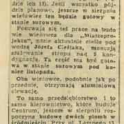 Artykuł poświęcony postępom prac na budowie drugiego etapu Domów Towarowych Centrum (Alfa) przy ul. Czerwonej Armii (dzisiaj ul. Święty Marcin)