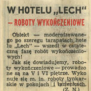 Notka poświęcona przebudowie hotelu "Lech" przy ul. Lampego (obecnie ul. Gwarna)