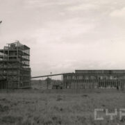 Skrzyżowanie ulic Wioślarskiej (obecnie Piłsudskiego) i Zamenhofa, na pierwszym planie pierwszy etap budowy bloku nr 12-13 na os. Jagiellońskim, w głębi os. Piastowskie i budowa bloku nr 36-37, około 1978 roku