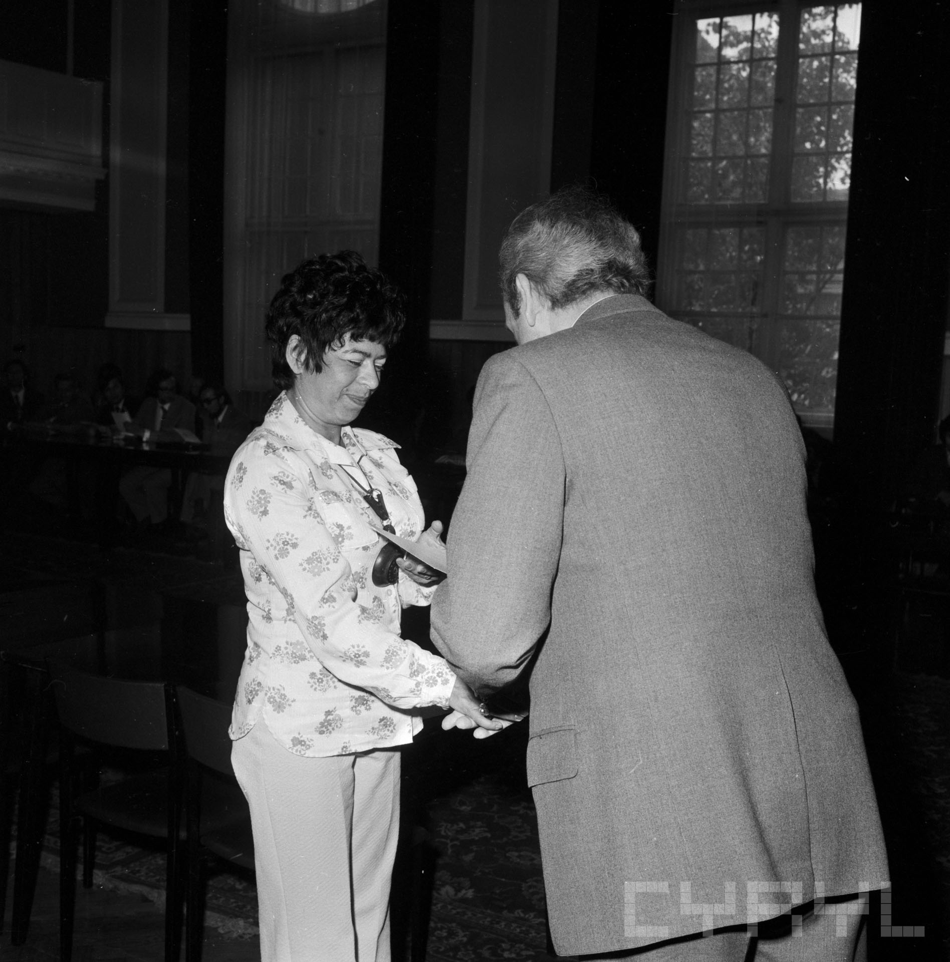 Absolutorium Podyplomowego Studium Dziennikarskiego przy Uniwersytecie im. A. Mickiewicza, nagrody za najlepsze prace dyplomowe wręczał prorektor UAM prof. Stanisław Michalski30.05.1975