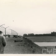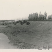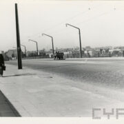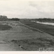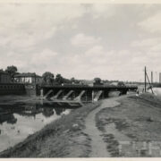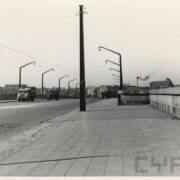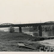 Most Rocha i zakole Warty, na pierwszym planie droga z Czartorii na Chwaliszewie na Berdychowo (z przeprawą promową, dzisiaj pokrywa się częściowo z ul. Baraniaka)1960