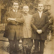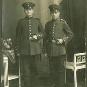 Maksymilian Szymkowiak ze swoim najlepszym przyjacielem M. Pawliczakiem w wojsku niemieckim, pocztówka wysłana przez Maksymiliana do brata Leona1915–1918