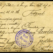 Odwrocie fotografii przedstawiającej Józefa Idziora z synem Franciszkiem, w okresie służby w 6. kompanii 47. batalionu roboczego armii niemieckiej31.12.1916