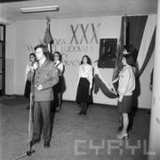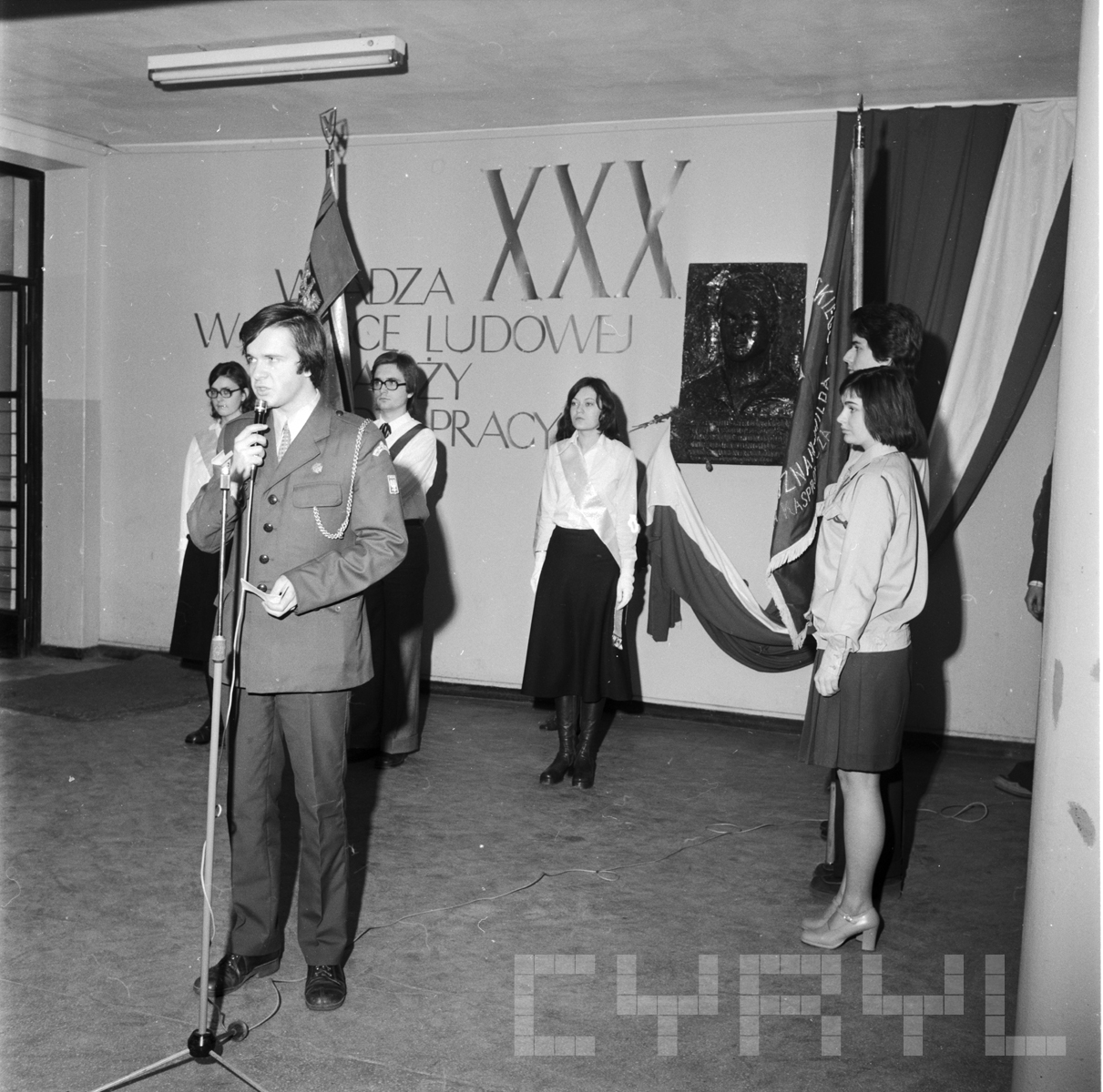 Warta przed pomnikiem Mariana Buczka na terenie Wyższej Szkoły Oficerskiej Służb Kwatermistrzowskich im. Mariana Buczka przy ul. K. Świerczewskiego (obecnie ul. Bukowska)27.11.1978–29.11.1978