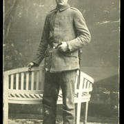 Odwrocie zdjęcia pamiątkowego z passe-partout przedstawiającego szeregowego Jana Grzybka, żołnierza piechoty w mundurze armii niemieckiej, po 1915 roku