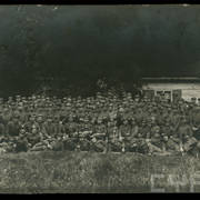 Zdjęcie grupowe batalionu Obrony Krajowej w Poznaniu wykonane prawdopodobnie w czerwcu 1919 roku, podporucznik Marian Gabriel Baute siedzi 10 od lewej06.1919