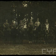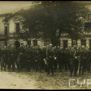 Żołnierze w niemieckich mundurach galowych, wśród żołnierzy prawdopodobnie Walenty Kledecki (brat Kazimierza) dziesiąty z lewej w rzędzie stojących żołnierzy (informacja dopisana ołówkiem na odwrociu), na odwrociu odręczna treść