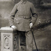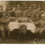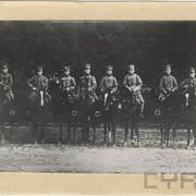 Józef Różewski (siedzi drugi od lewej) wśród grupy strażników granicznych, fotografia nie jest datowana, może pochodzić z okresu tuż po zakończeniu powstania wielkopolskiego
