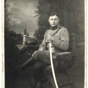 Kartka pocztowa ze zdjęciem na awersie, którą Piotr Cegłowski adresował do swojego brata Antoniego powstańca wielkopolskiego, na zdjęciu Piotr Cegłowski w mundurze artylerii wojsk niemieckich ma niewidoczne (zdrapane) oznaczenia pułkowe